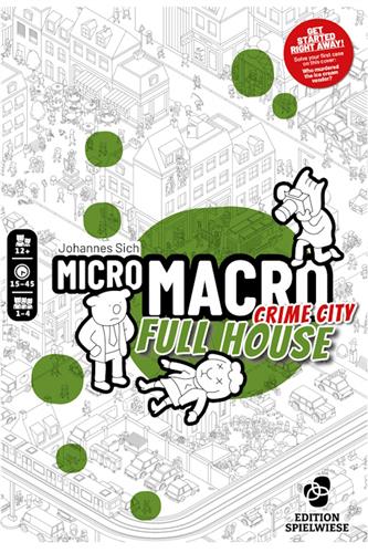 MicroMacro: Crime City 2 - Full House er et sjovt og drilsk detektivspil, hvor I skal opklare forbrydelser sammen ved at finde ud af, hvad der er sket. Studer kortet grundigt for at stykke begivenhederne sammen. Begynd spillet med det første sagsoplæg, og I kan nu enten opklare sagen trin for trin ved at trække nye oplæg til sagen, eller I kan kaste jer ud på dybt vand og ikke bruge flere hints.