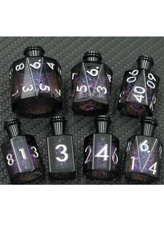 Vi har også et udvalg af metal-terninger og ekstra flotte terninger med indgraverede mønstre og deslige. Mangler du terningposer, raflebægre eller terningtårne finder du dem under ’Tilbehør’.