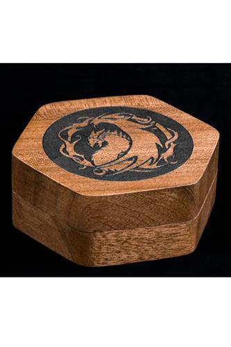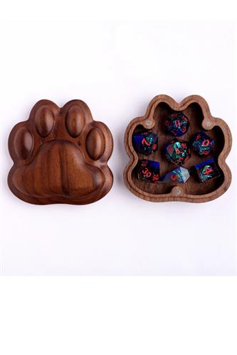 Cat Paw Dice Box er en terningæske til at opbevare rollespilsterninger. Æsken er skåret af afrikansk valnød givet et læder-finish, og æsken er udstyret med magnetlukning.